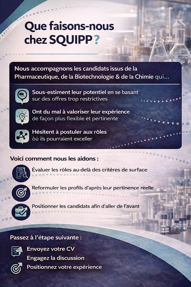 Il existe un moment décisif dans votre recherche d’emploi où une offre semble parfaitement correspondre à votre profil : les responsabilités rappellent des missions que vous connaissez, l’environnement vous est familier et le niveau de responsabilité s’inscrit dans une continuité logique de votre parcours, notamment dans les industries pharmaceutique, biotechnologique et chimique. Cette première lecture crée une perception structurée de continuité entre votre expertise actuelle et votre contribution future, et sert de base à l’évaluation de votre pertinence professionnelle.